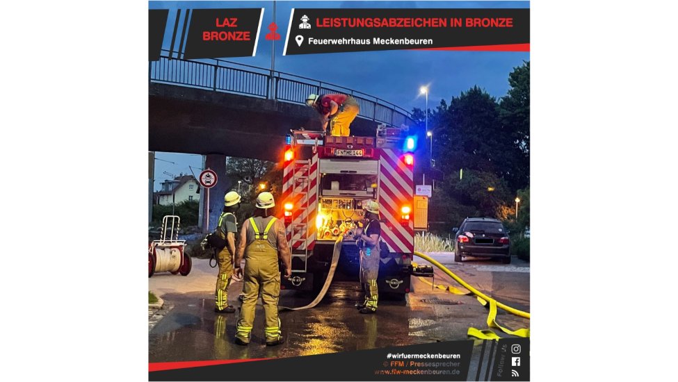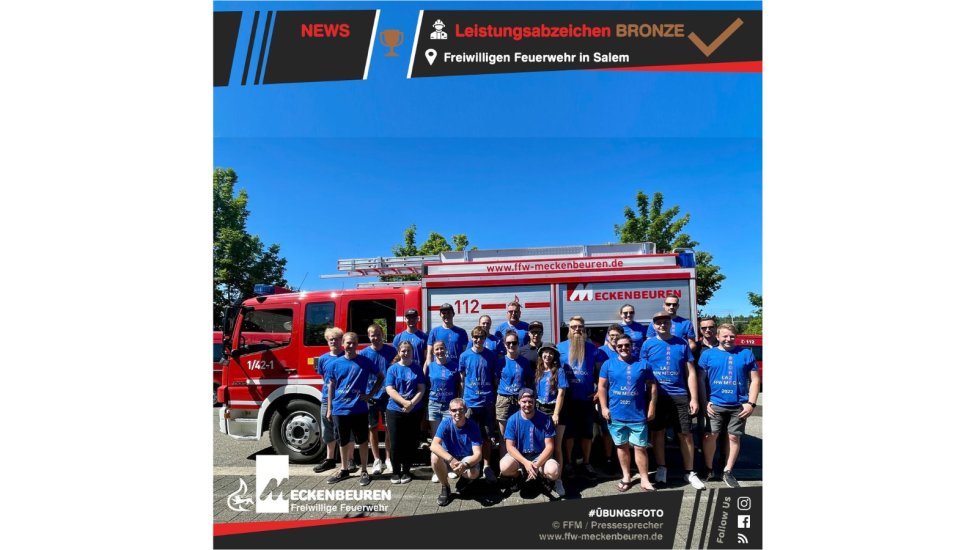 14.05.2022 Leistungsabzeichen Bronze 202214.05.2022LEISTUNGSABZEICHEN IN BRONZE – ES GEHT LOS!Letzte Woche starteten wir mit den Vorbereitungen zur Abnahme des Leistungsabzeichen (LAZ) in Bronze. Durch die lange Corona-Pause wird die Feuerwehr Meckenbeuren in diesem Jahr mit 4(!) Gruppen bei der Abnahme des LAZ am 25.06.2022 bei der Freiwilligen …Mehr