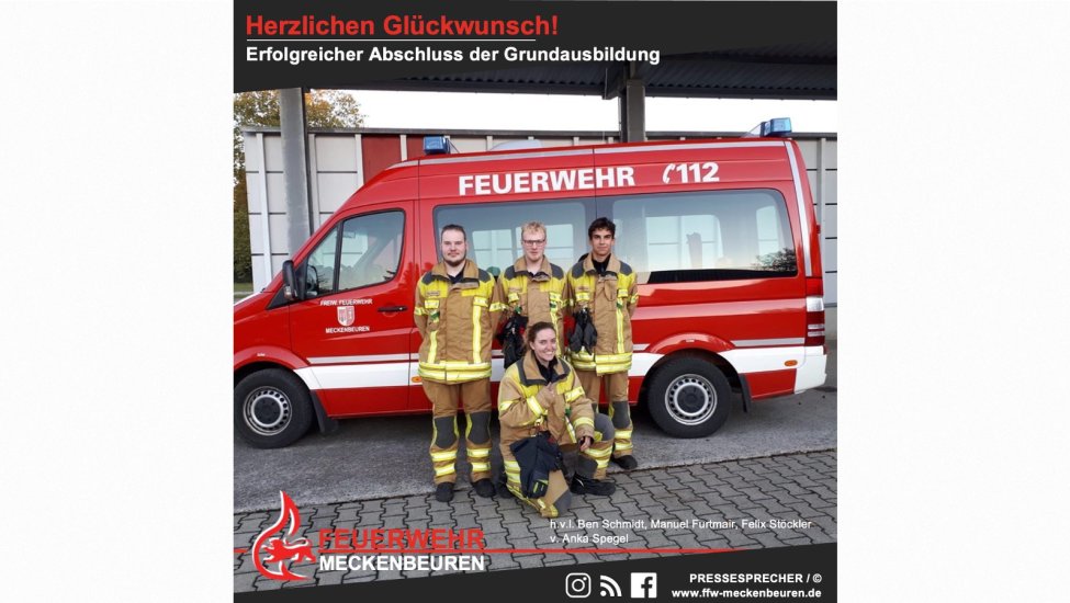 © Freiwillige Feuerwehr Meckenbeuren08.01.2024 Erfolgreicher Jahresauftakt des Spielmannszugs Kehlen08.01.2024Die Spielerversammlung des Spielmannszugs Kehlen am 6. Januar 2024 im Feuerwehrhaus Kehlen war nicht nur geprägt von Neuwahlen der Vorstandschaft und Berichten, sondern auch von besonderen Highlights und großzügigen Unterstützungen.Mehr