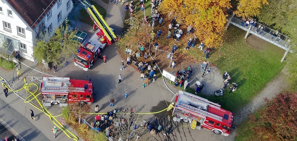 © Freiwillige Feuerwehr Meckenbeuren26.10.2024 Hauptübung 202426.10.2024Um 14:05 Uhr starte die Einsatzübung. Angenommen wurde ein Brand in der Eugen-Bolz-Grundschule, bei dem mehrere Schüler und Betreuer im Gebäude vermisst wurden.Mehr