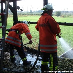 Am frühen Morgen gegen 7.30 Uhr wurde die Freiwillige Feuerwehr Meckenbeuren zu einem Brand einer Hopfendarre nach Obermeckenbeuren gerufen. Beim Eintreffen am Einsatzort brannte die Hopfendarre und der dazugehörige Lagerraum bereits lichterloh. Ein Übergreifen der Flammen auf benachbarte Gebäude konnte durch das rasche Löschen der Feuerwehr ebenso verhindert werden, wie die Zerstörung der Hopfenmaschine. Mit allen sechs Löschfahrzeugen der Feuerwehr Meckenbeuren konnte das Feuer schnell gelöscht werden.