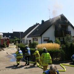 Durch einen Heizstrahler entstand im 1. Obergeschoss eines Einfamilienhaus im Farnweg ein Brand. Unter Atemschutz wurde das Feuer gelöscht und mittels Drucklüfter das Gebäude vom Rauch befreit. Nach der abschließenden Kontrolle des gesamten Hauses mit der Wärmebildkamera konnte der Einsatz beendet werden.