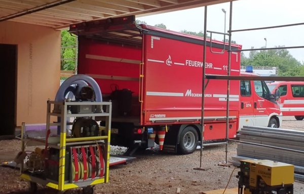 Am Samstagmorgen kam es infolge eines Starkregen-Ereignisses zu einer sogenannten Flächenlage auf der Gemarkung Tettnang. Zahlreiche Einsatzstellen mussten aufgrund von Überflutungen abgearbeitet werden. Die Feuerwehr Meckenbeuren unterstützte die örtlichen Kräfte mit zwei Löschgruppenfahrzeugen (LF) sowie einem Gerätewagen Transport (GW-T). Die alarmierten Einheiten wurden verschiedenen Einsatzstellen zugewiesen. Der Einsatzschwerpunkt lag überwiegend auf dem Abpumpen von eindringendem Wasser in Wohn- und Geschäftsgebäuden. Mithilfe von Tauchpumpen und Wassersaugern konnte der Wasserschaden begrenzt und weiterer Sachschaden verhindert werden. Ein herzliches Dankeschön an die Feuerwehr Tettnang für die hervorragende Zusammenarbeit und die super Verpflegung.